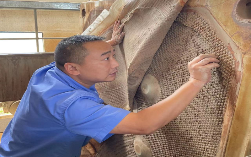 2018年1月,王穎被安排到新建成的周家壩污水廠工作,由于有污泥脫水的工作經(jīng)驗(yàn),帶頭學(xué)習(xí)新廠新設(shè)計(jì)的板框壓濾系統(tǒng)的重?fù)?dān)自然而然落在他肩上,他沒有抱怨新廠離家遠(yuǎn)、交通不便利、脫水車間環(huán)境差等客觀問題,而是靜下心來一頭扎進(jìn)學(xué)習(xí)的熱潮中。板框脫水系統(tǒng)看似只有進(jìn)泥、調(diào)泥、壓泥、出泥幾道工序,但整套流程下來需要進(jìn)行數(shù)十次步驟,還要根據(jù)泥質(zhì)調(diào)整步驟中的參數(shù),不厭其煩地記錄下每一次的試驗(yàn)數(shù)據(jù),午餐時(shí)間他都毅然堅(jiān)守在現(xiàn)場,同事們幫忙打來的飯,基本上是扒拉幾口便又和師傅討論起問題。尤其是炎熱的夏天“汗如泉涌”,機(jī)房的氣味刺鼻難聞,很多人不愿久干,為了能保證新廠正常出水投運(yùn),做好污泥處理的大后方,他堅(jiān)持下來了,正是這樣重復(fù)的“常規(guī)操作”讓他順利出師。