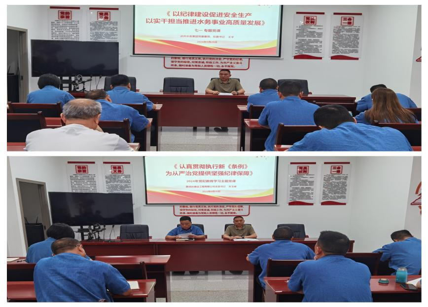 強(qiáng)黨性,講好一黨專題黨課。 一堂生動(dòng)的黨課,是一場(chǎng)深刻的理論教育、一次初心的凈化洗禮。6月26日,支部聯(lián)系領(lǐng)導(dǎo)集團(tuán)黨委委員、紀(jì)委書記王宇為支部全體黨員上了一堂主題為“以紀(jì)律建設(shè)促進(jìn)安全生產(chǎn) 以實(shí)干擔(dān)當(dāng)推進(jìn)水務(wù)事業(yè)高質(zhì)量發(fā)展”的黨課,并對(duì)全體黨員同志如何嚴(yán)格遵守黨規(guī)黨紀(jì)提出更高的要求。支部書記朱玉峰詳細(xì)解析了《中國(guó)共產(chǎn)黨紀(jì)律處分條例》中的“六大紀(jì)律”的相關(guān)內(nèi)容,讓全體黨員對(duì)“六大紀(jì)律”有了更清醒的認(rèn)識(shí),黨性素養(yǎng)被進(jìn)一步錘煉。